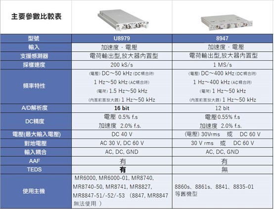 考慮重新採買暫態記錄器(示波器),請告訴我電荷模組U8979和8947的差別。A.