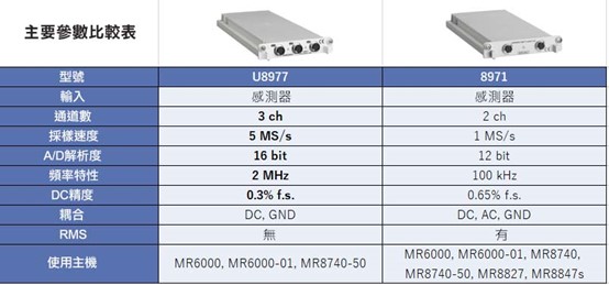 這是和電流模組U8977以及之前的電流模組8971的比較表。需要重新購採買時,請參閱以下內容。 (2020年11月) 相關產品:MR6000、MR6000-01、MR8827、MR8847、MR8740-50等存儲記錄儀系列